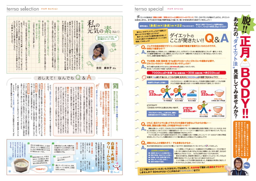 スポーツクラブの会報誌・A3見開き表裏のレイアウトデザインをしました。
